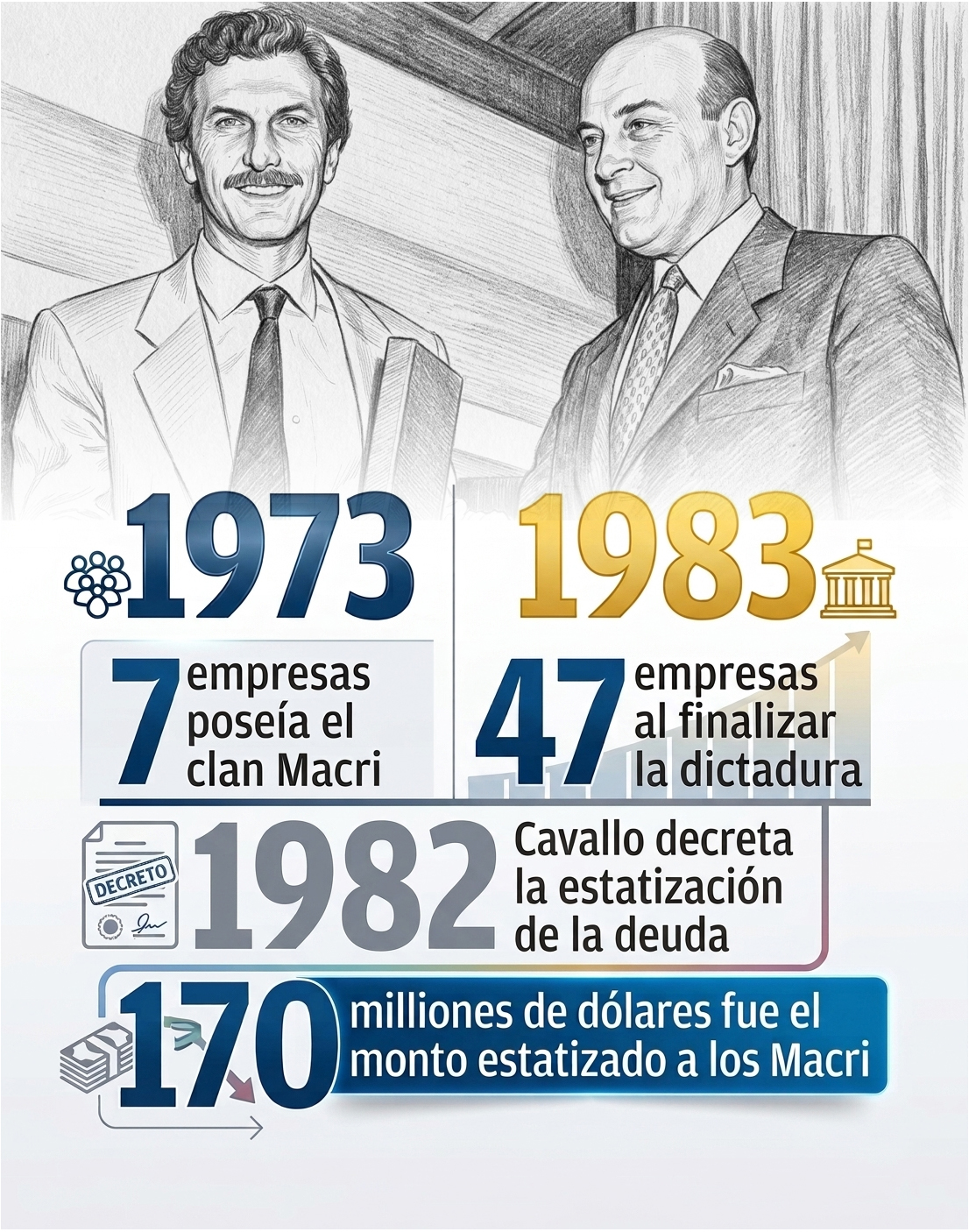 El grupo empresarial de los Macri, liderado por Franco Macri, se enriqueció enormemente a costa del Estado durante la dictadura; y además lavó sus deudas en lo que se conoce como "estatización de la deuda privada", que llevó adelante Domingo Cavallo en 1982. En el 2017 Mauricio Macri tuvo que retroceder frente a la movilización y el amplio repudio social, y excluir de la ley del 2X1 a los casos de lesa humanidad.